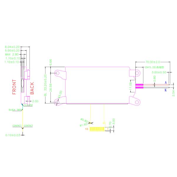 SF-BS12864-174-YTDSY-R is a monochrome 128x64 graphic dot matrix display module which is having the outline dimension of 79.05(L) X 35.2(W) X 8.04(H) mm and AA size 46.05x22.05 mm. It is built in with ST7567 controller or equivalent IC; it supports SPI interface. The SF-BS12864-174-YTDSY-R dot matrix display module is 3V power supply; This graphic display 128x64 module is available for without backlight or with LED backlight options. This 128 x 64 LCD module can be operating at temperatures from -10℃ to +60℃; its storage temperatures range from -20℃ to +70℃.